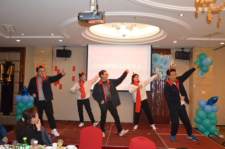 2018年2月2日晚,浙江揚帆新材杭州分公司2018年迎新晚會在杭州市濱江群樂飯店隆重舉行,股份公司上下歡聚一堂,共賀新年。