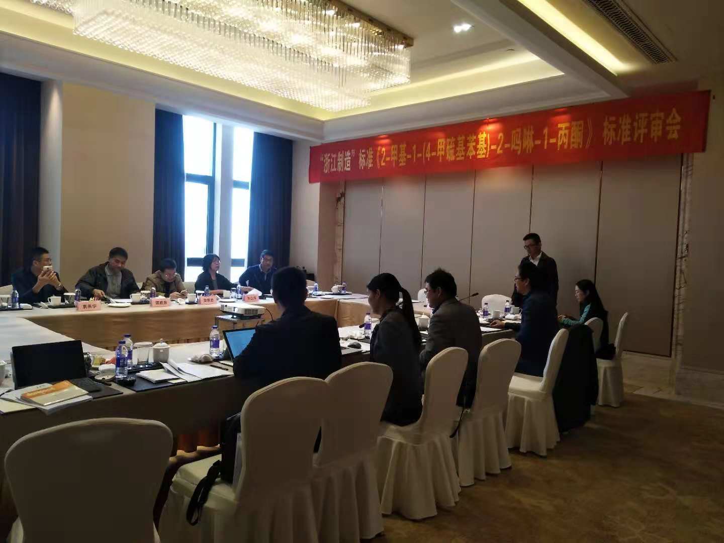 10月31日上午,由浙江省品牌建設聯合會組織、紹興質檢院牽頭、浙江揚帆新材料股份有限公司為主起草的《2-甲基-1-(4-甲硫基苯基)-2-嗎啉基-1-丙酮》“浙江制造”團體標準評審會在上虞開元大酒店三樓暢言廳順利召開。上虞質監局杜錫勇院長、王建剛所長,專家組成員孫衛萍主任、 周慧忠院長、揚帆新材上虞基地總經理張永彬等參加了此次評審會議。