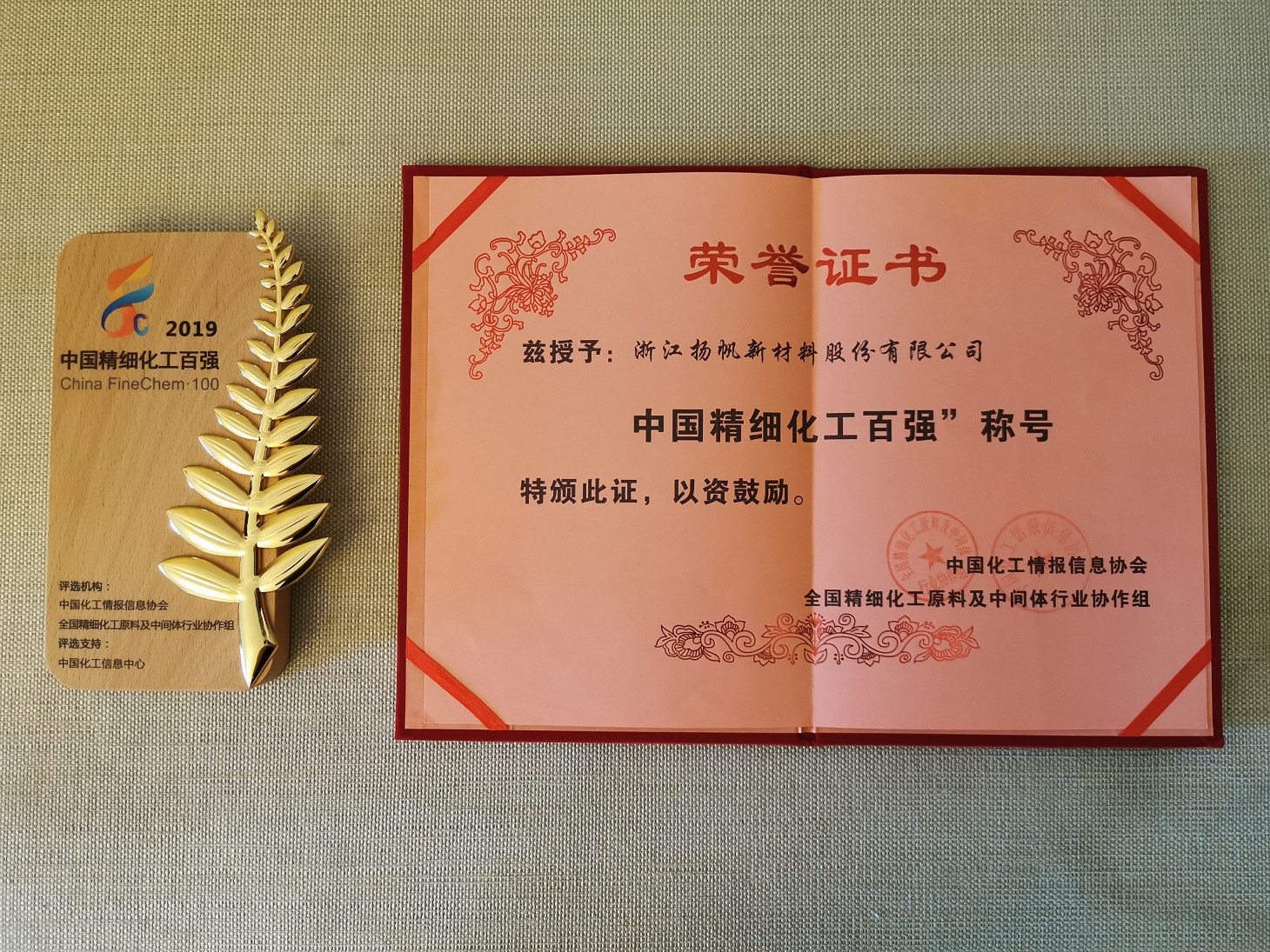 本次評選是中國化工情報信息協會、全國精細化工原料及中間體行業協作組,在中國化工信息中心的支持下,以公正、公允、客觀為原則,根據企業提供的2018年度綜合指標(綠色發展、經營管理能力、創新能力和社會責任等)、上市公司公開數據、國家企業信用信息公示系統公開信息、工業和信息化部公開信息,經中國精細化工百強評選辦公室調查、核實和計算,依據綜合得分產生的。這也客觀而充分地體現了公司在精細化工領域優異的既往成績和良好的可持續發展能力。