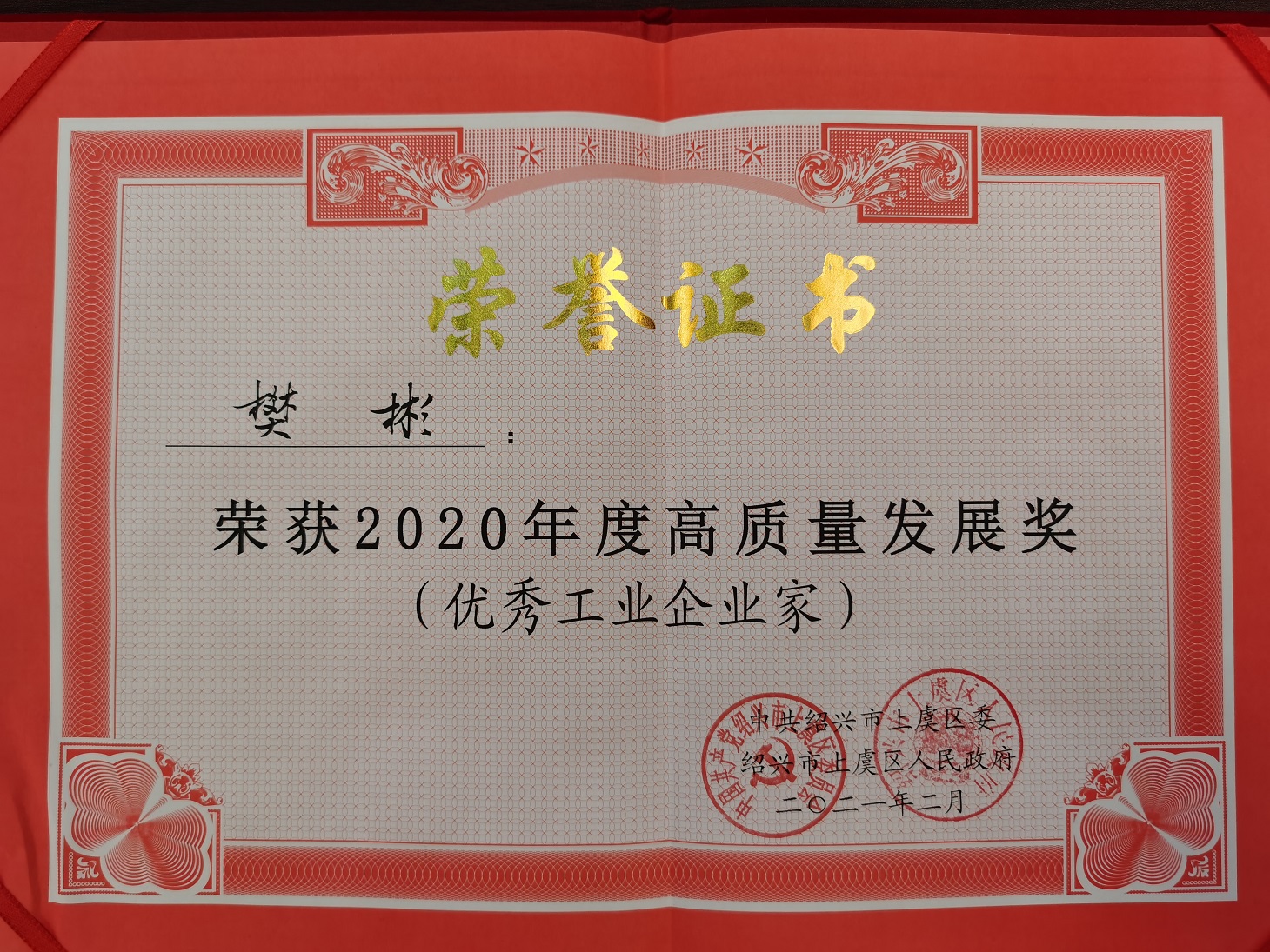 近日,上虞區委召開了2021年經濟工作會議。揚帆新材董事長樊彬應邀參加了此次會議,并榮獲“2020年度高質量發展獎(優秀工業企業家)榮譽稱號。