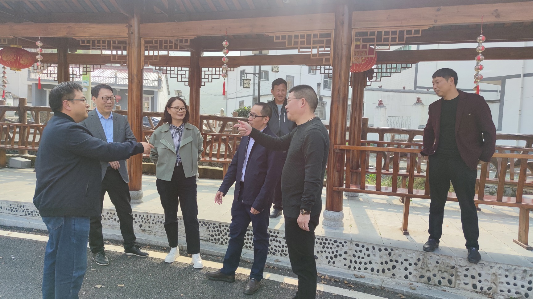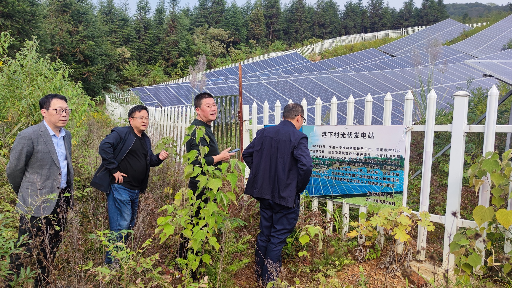 當天一行人如約到達港下村,張書記向陶總一行介紹了港下村基本情況。陶總在了解基本情況后表示:公司作為港下村結對企業,不希望幫扶只是一次性搞個活動就結束,而是希望為村里發展提供力所能及的支持,為此公司接下來希望從組織剩余勞動力再就業、產業開發、給予困難人員公益幫助等方面進行幫扶,為更好地做好接下來的幫扶工作,座談中陶總特別對村目前產業布局、待開發山、地、水資源、剩余勞動力情況向張書記等村委人員一一進行了解。座談后在歐陽鎮長、張書記帶領下,一行人深入村內進行走訪,實地查看可開發荒地、現有光伏產業等現場,在走訪后,陶總根據村實際情況結合他前期市場調研和手上現有資源,提出了未來可擴大光伏產業及種植太平盛柿來進行產業幫扶的建議,并得到在場領導的初步認可。