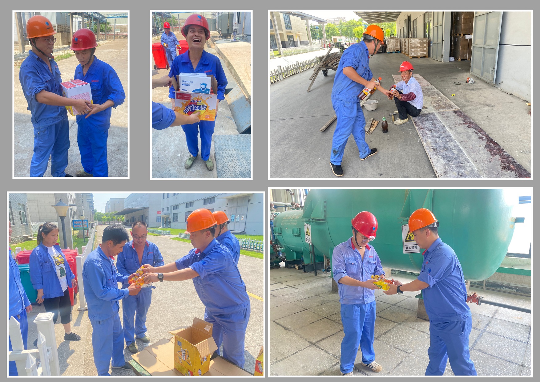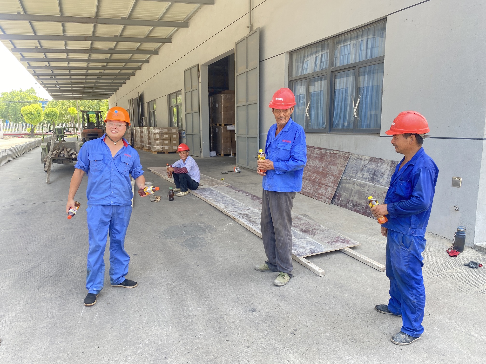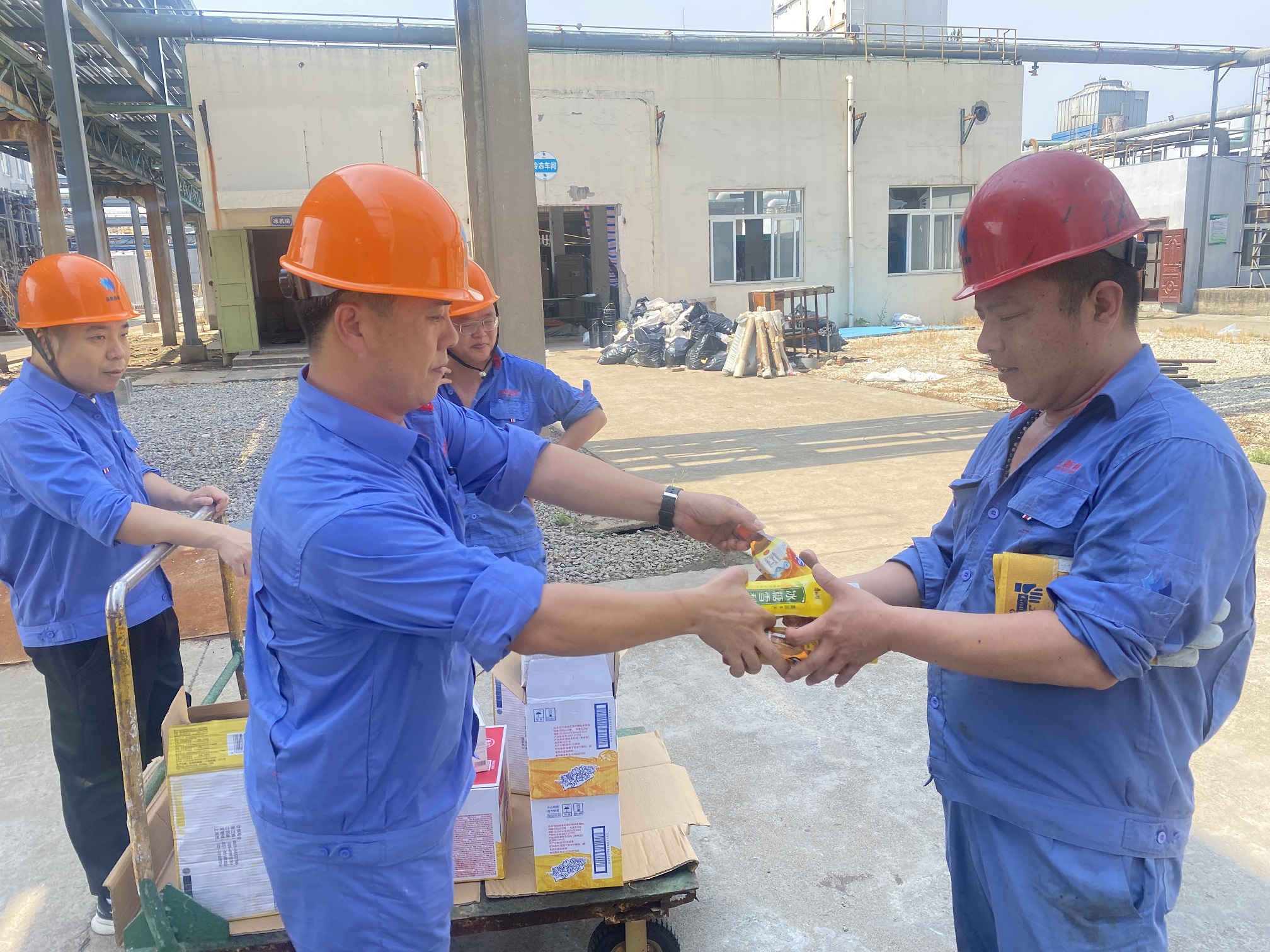 7月26日下午,揚帆新材上虞生產基地工會開展送清涼活動。工會委員李琴帶隊,在各車間主任的陪同下向各車間和倉庫奮戰在一線的職工送上“清涼”冷飲。