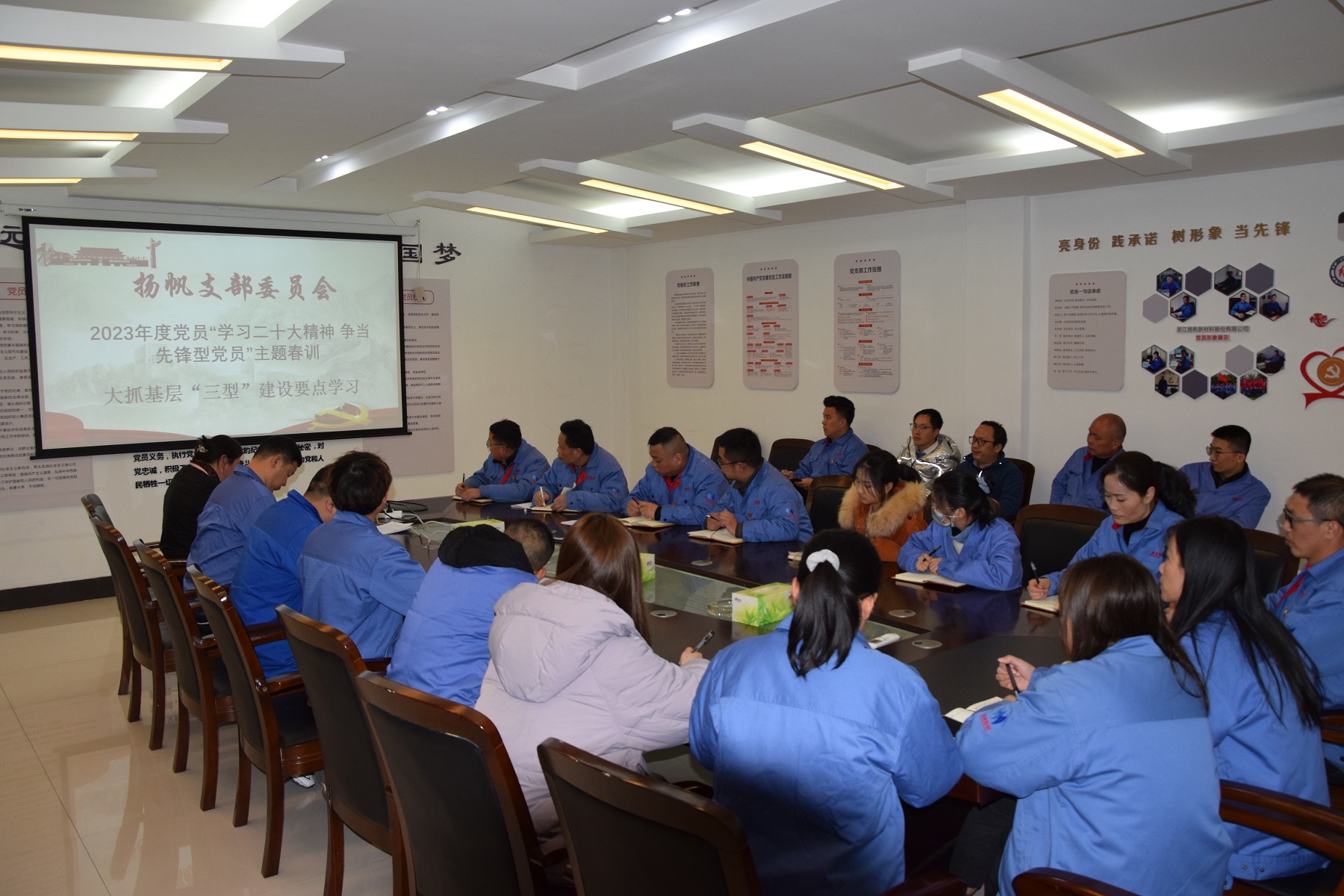 2月23日下午,揚帆新材黨支部開展學習活動,支部書記樊相徐、副書記李琴及支部黨員及流動黨員共計25人參加學習。