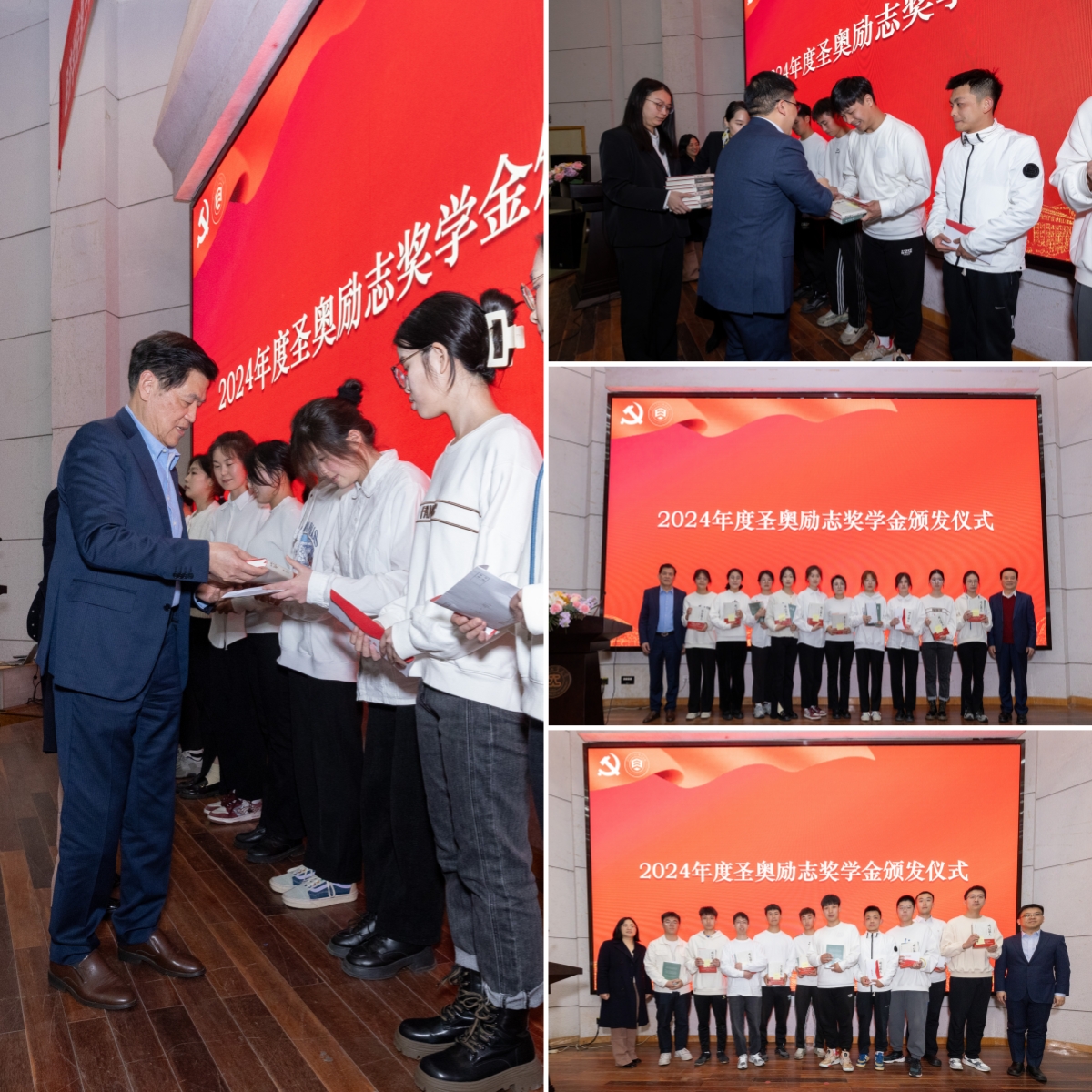 活動現場還隆重舉行了2024年圣奧勵志獎學金頒發儀式。樊培仁董事長、樊彬董事長共同參與頒發2024年圣奧勵志獎學金,并向受獎學子贈送了樊培仁董事長的個人傳記《成己惠人——樊培仁的企業家精神》。這本傳記不僅記錄了樊培仁創業經歷,更飽含著“成己惠人”的人生智慧。可以為即將開啟職業生涯的學子們提供珍貴的啟發和指導。