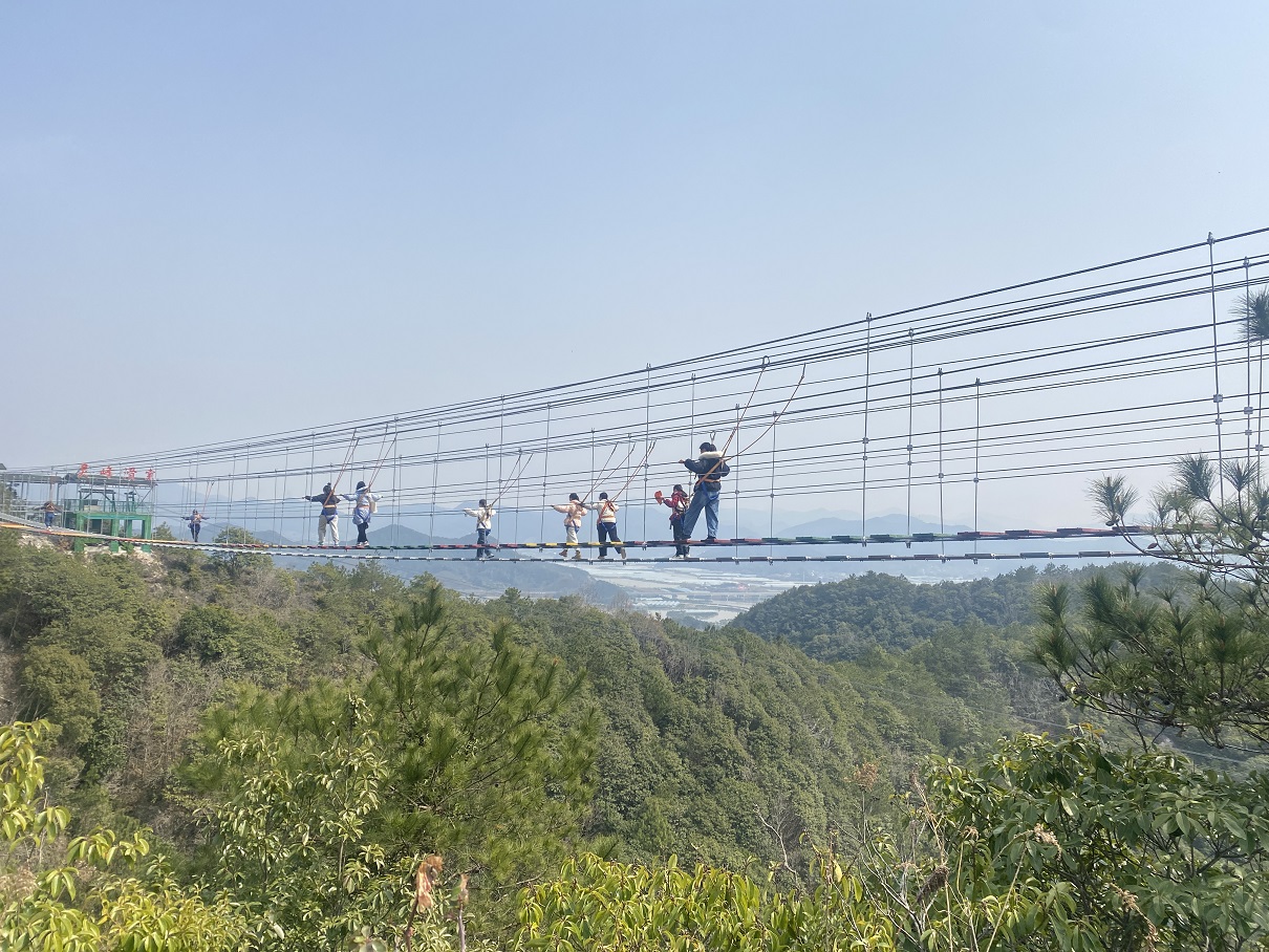 景區內的高空體驗項目成為活動亮點。女職工們分組挑戰步步驚心、玻璃橋及森林水滑道,在驚險與趣味中突破自我。玻璃橋上,她們攜手前行,以默契配合跨越懸空障礙;水滑道疾馳而下,團隊協作讓速度與激情并存。這些項目不僅考驗個人膽識,更強化了互助協作的團隊精神?